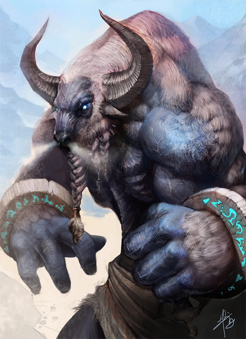 Yakfolk, podobnie jak ich kuzyni Minotaury, słyną z siły i odporności. Choć dzielą muskularną budowę i imponującą posturę swoich byczych krewnych, minoyaki mają również gęste, kudłate futro, które chroni ich przed surowym zimnem wysokogórskich siedlisk. Ich rogi, zamiast wyginać się do przodu jak u minotaurów, zwykle zakreślają majestatyczny łuk ku tyłowi.
